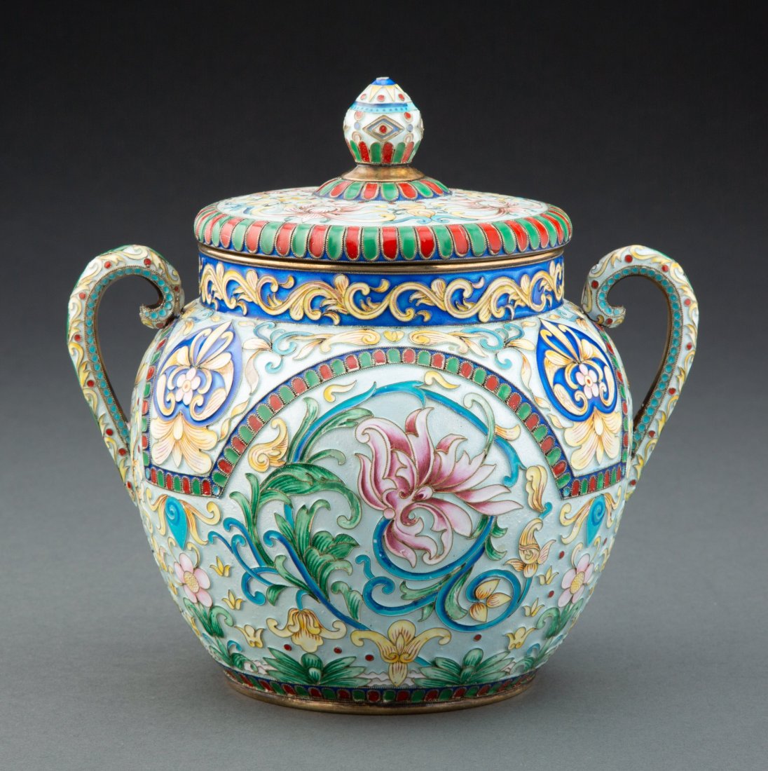 A Russian Partial Gilt Silver Cloisonné Sugar B