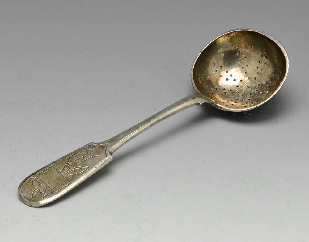 SoldRUSSIAN EIGHT SILVER GILT-WASHED SPOONS, MARKEDRUSSIAN EIGHT SILVER GILT-WASHED SPOONS, MARKED Group of eight Late 19th c. Russian Engraved Gilt Washed 84-Silver Spoons, including: Sifter spoon, 1874 Moscow, assayer V. Savinsky, by silversmith AntSee Sold Price