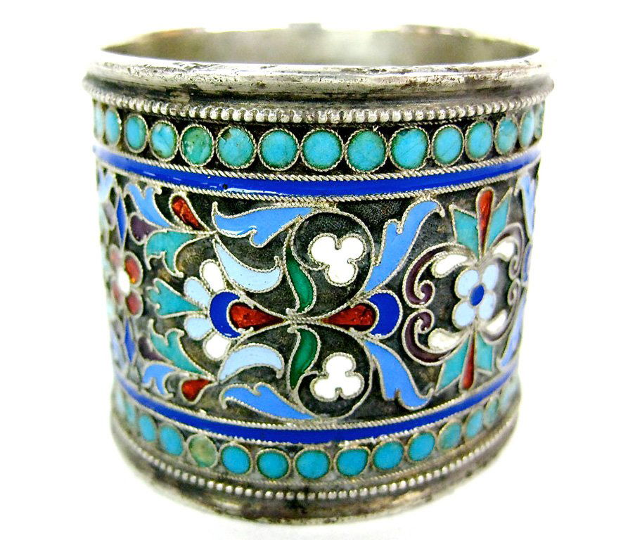 19th C. Russian Enamel 84 Silver Napkin Holder
