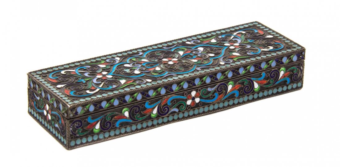 A Russian En Plein Enamel and Silver Cigarette CaseMar 11, 2026A SILVER AND CLOISONNE ENAMEL RECTANGULAR BOX, CHINESE OR INDIAN, 19TH - 20TH CENTURY3 days LeftRUSSIAN SILVER CLOISONNE ENAMEL CIGARETTE CASEMar 21, 2026A CLOISONNE ENAMEL BOX WITH COVERMar 22, 2026ANTIQUE RUSSIAN SILVER ENAMEL CIGARETTE CASEMar 21, 2026RUSSIAN SILVER CIGARETTE CASE, fr. CHRISTIE'sMar 21, 2026Continental Silver, Enamel & Jeweled Musical Jewelry BoxMar 14, 2026Chinese White Jade Inset Cloisonne and Enamel BoxMar 11, 2026RUSSIAN SILVER ENAMEL BOX SIGNED FABERGE5 days LeftHand-Painted Floral Jewelry Box2 days LeftChinese Export Cloisonne Lacquer Box with Floral Motifs 20th CenturyMar 12, 2026A 19TH CENTURY OTTOMAN CLOISONNE ENAMEL AND SILVER SNUFF BOXMar 19, 2026AN INDO-PERSIAN SILVER AND GOLD INLAID KOFTGARI STEEL PEN BOX, 19TH CENTURY3 days LeftA CLOISONNE ENAMEL BOX WITH COVER4 days LeftA CLOISONNE ENAMEL BOX WITH COVERMar 22, 2026Qajar Silver and Silver-Gilt Cigarette Box, PersiaMar 15, 2026