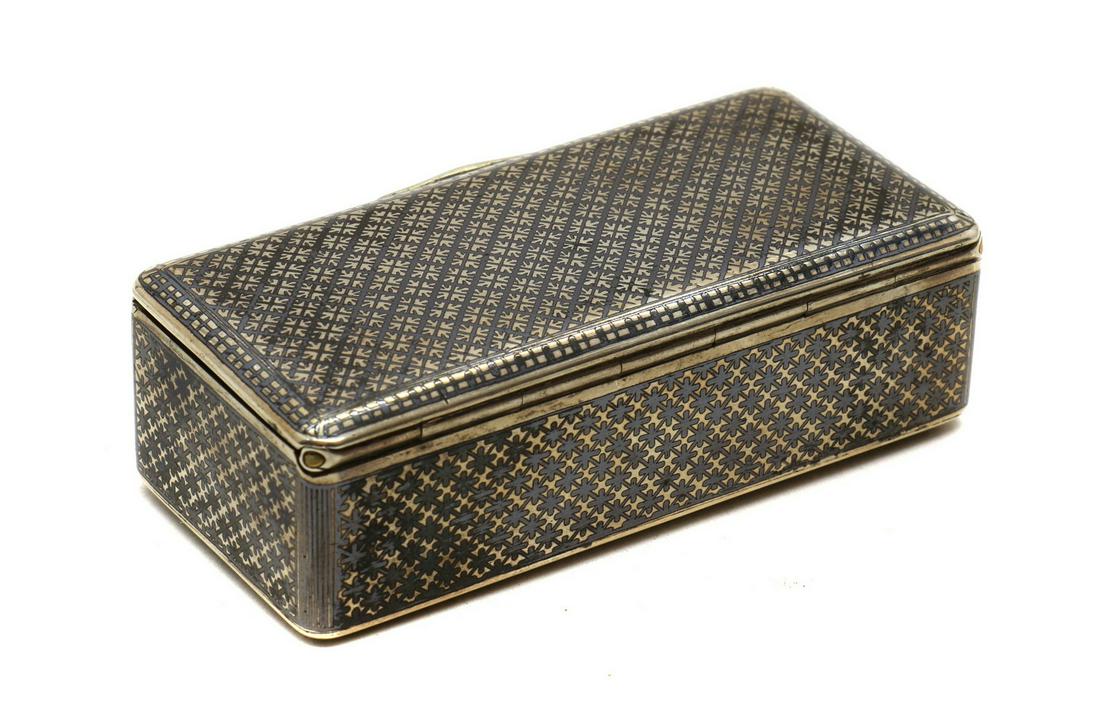 RUSSIAN SILVER SNUFF BOX, 1889Mar 21, 2026EARLY RUSSIAN SILVER SNUFF BOX, 1826Mar 21, 2026Russian Silver & Niello Cigarette Case5 days LeftA Russian 84 Silver Cigarette Box2 days LeftAntique Russian Silver Cigarette Case5 days LeftRussian Silver & Niello Cigarette Case5 days LeftRUSSIAN ENGRAVED GILT STERLING SILVER SNUFF BOX2 days LeftRussian Silver Cigarette Case5 days LeftRUSSIAN IMPERIAL GOLD & SILVER CIGARETTE CASEMar 21, 2026Russian Silver Ladies Cigarette Case5 days LeftM.SEMENOVA, LARGE RUSSIAN SILVER CIGAR BOXMar 21, 2026Russian Silver Cigarette Case5 days LeftQajar Silver and Silver-Gilt Cigarette Box, PersiaMar 15, 2026Russian Gold Mounted Blued Steel Cigarette Case (Probably Faberge)5 days LeftANTIQUE RUSSIAN SILVER ENAMEL CIGARETTE CASEMar 21, 2026RUSSIAN SILVER & GUILLOCHE CIGARETTE CASE fr. SOTHEBY'sMar 21, 2026