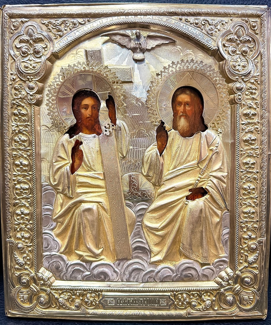 A RUSSIAN SILVER-GILT TRINITY ICON, MOSCOW 1896-1908