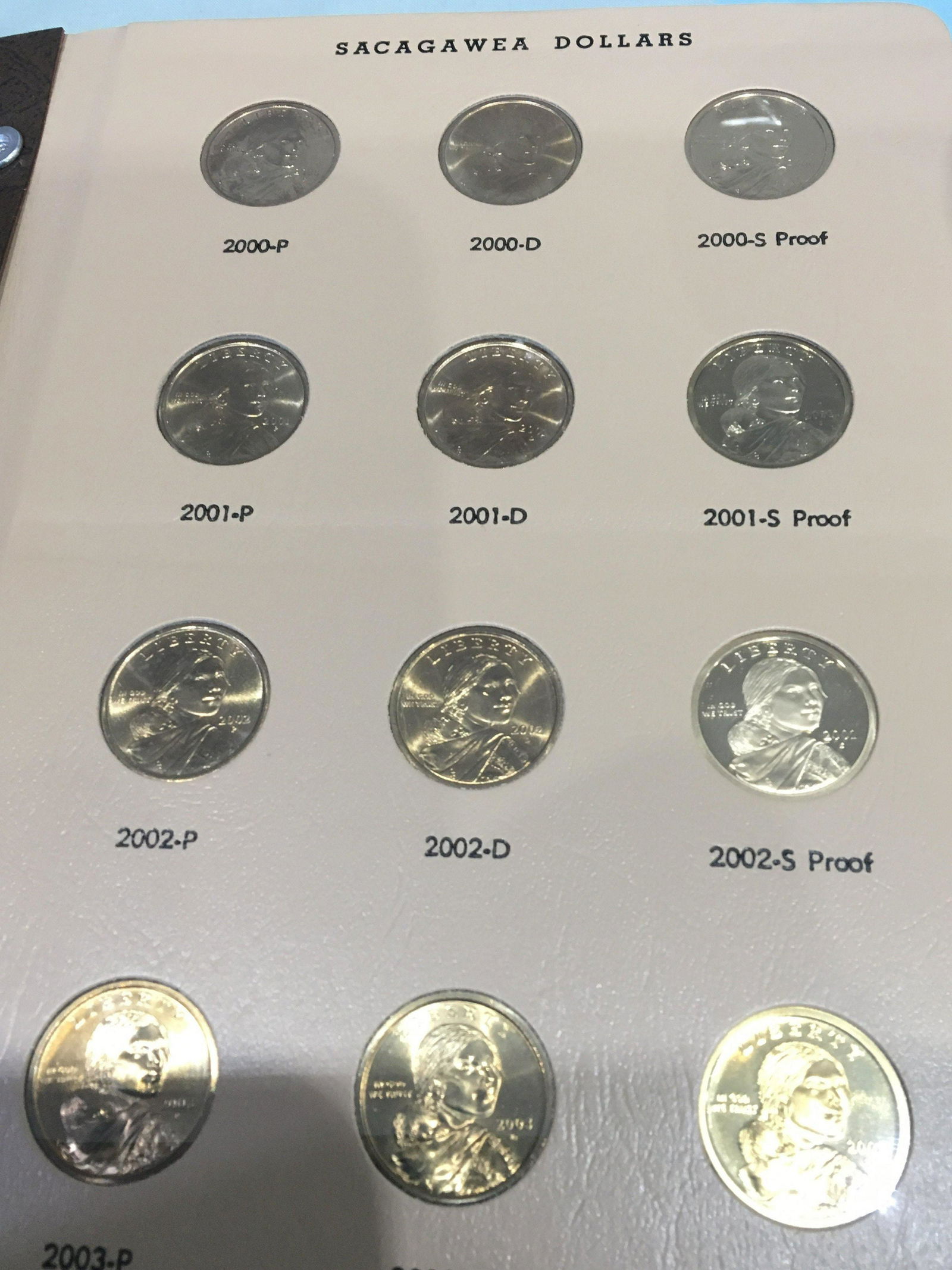 A Sacagawea Dollar Proof Coin set complete from 2000-P