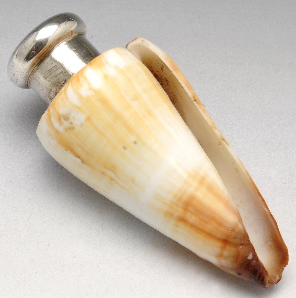 A Sampson Mordan silver mounted shell scent bottle.