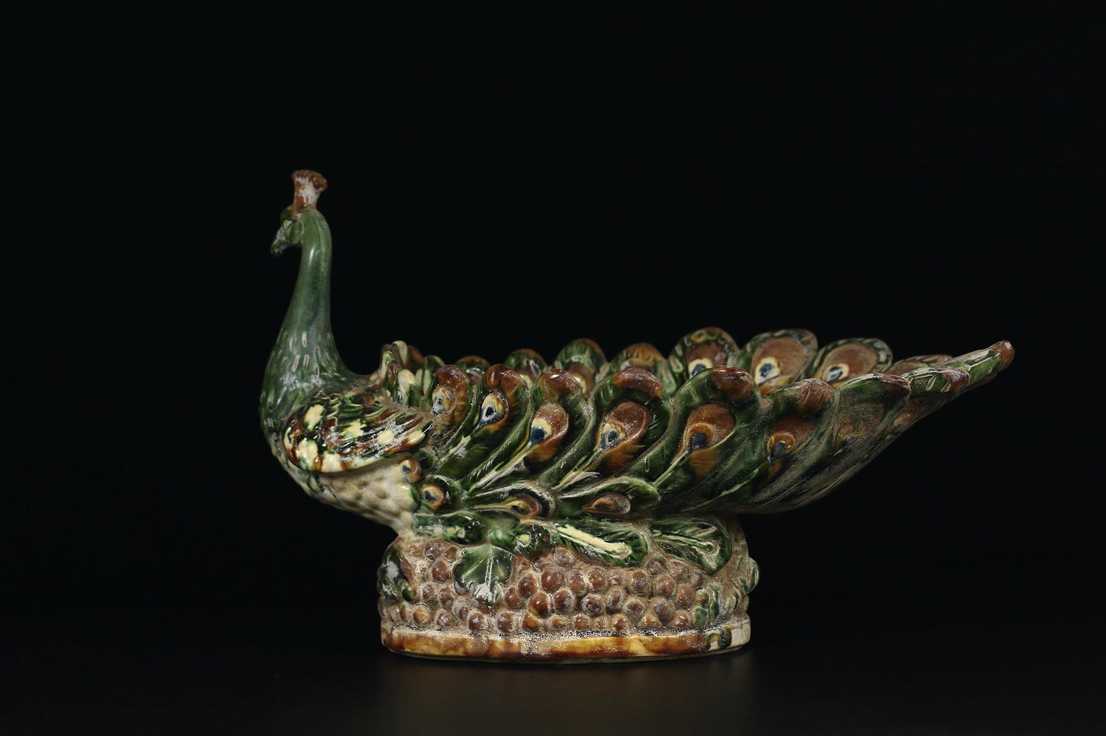 A SANCAI PEACOCK DISH