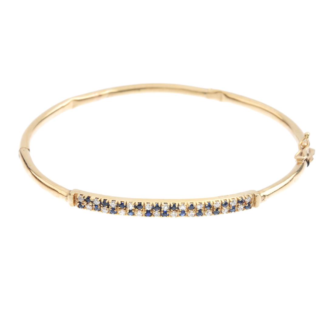 A sapphire and diamond bangle. The alternating