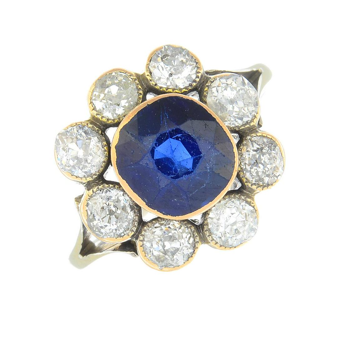 A sapphire and diamond cluster ring.Estimated