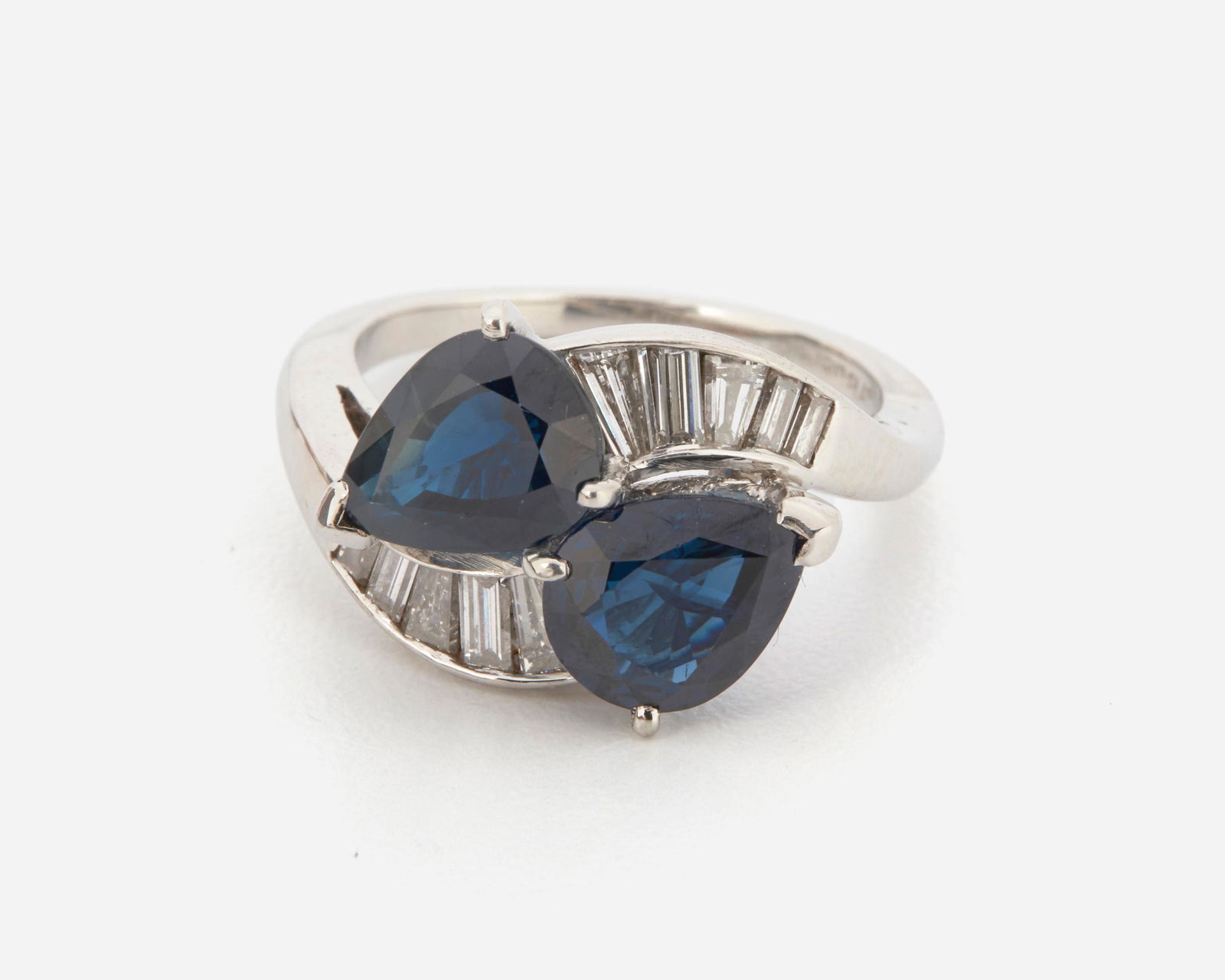 A sapphire and diamond crossover ring