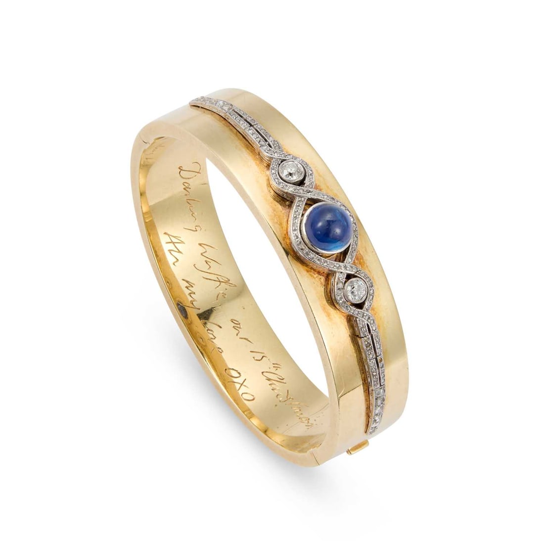 A SAPPHIRE AND OLD-CUT DIAMOND BANGLE