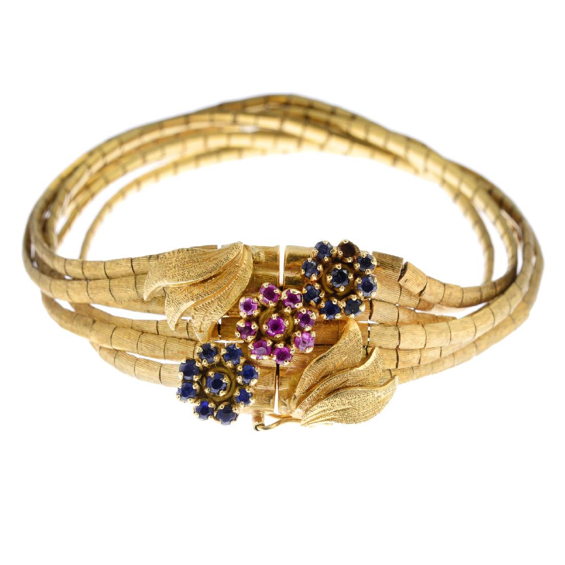 Vintage 18k Gold 3 Row Beaded Wrap Bracelet with Ruby Sapphire and DiamondsBidhaus4.2(840)$1003 days Left