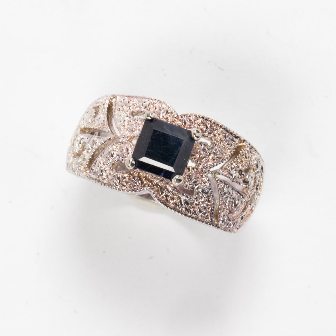 A sapphire and silver ring