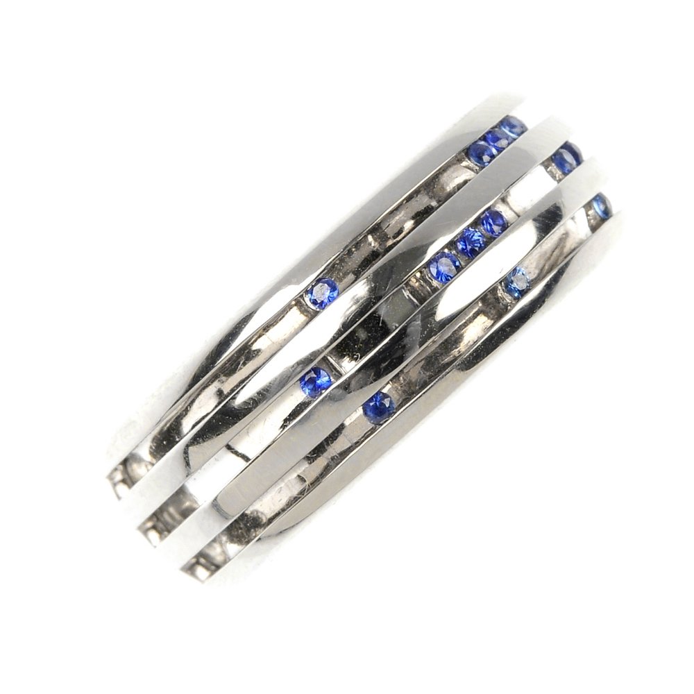 A sapphire band ring.