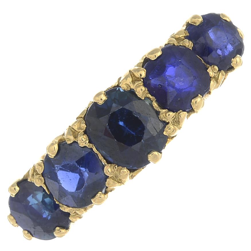14K gold sapphire and diamond mounted ring. Central oval sapphire (5.4 x 8.2mm) flanked by 2 roundTremont Auctions4.6(313)$2505 days Left