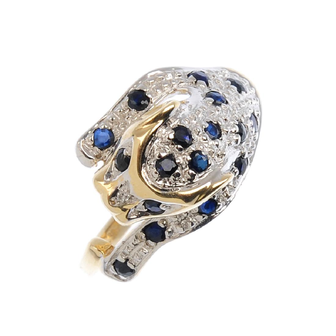 A sapphire leopard ring. Designed as a pouncing