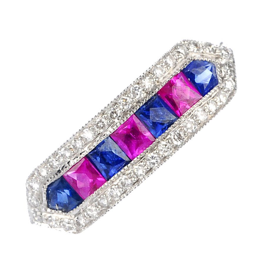 A Sapphire, Ruby And Diamond Dress Ring.