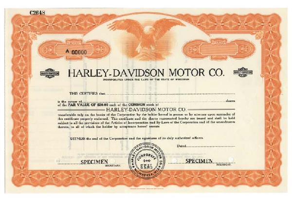 Harley Davidson Stocks, Bonds & Bank Certificates