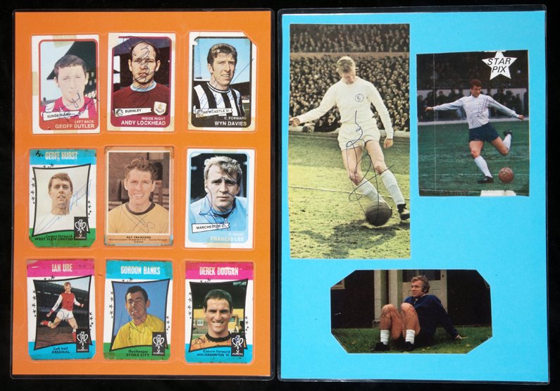 A scrapbook containing numerous autographed items,