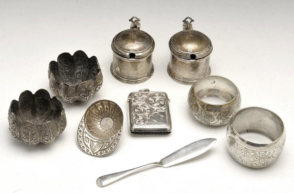 Group Lot of Silverplate Items5 days LeftLot of silver cutlery113 Lots AwayLot of Sterling Silver Rimmed and Topped Items5 days LeftLot of Mostly Silverplate Items - Tea Service, etc2 hrs LeftMeridan, Imperial Silver & Others Assorted 9pc LOTFeb 26, 2026MIXED SILVER LOT STERLING 900 AND SPANISH SILVER 835Feb 21, 2026Collection of silver consisting of pepper and salt shakers, jugs, bell, bowl and statue of a boy,Feb 15, 2026Vintage Silver-Plated Serving Dish Assortment, Mixed Forms, 5 Pieces5 days Left(11pc) GROUP OF MISC. SILVER HOLLOWAREFeb 22, 2026Miscellaneous Silver Cutlery & Sixteen Small Silver Salt Shakers1 day LeftGroup of 5 Silver ArticlesFeb 26, 2026LARGE GROUP SILVER HOLLOWARE & SERVING ITEMSFeb 22, 2026Group of Sterling Silver Table Articles, 29361 Lots AwaySeven Silver and Metal Glass Articles78 Lots AwayANTIQUE AND VINTAGE SILVER PLATED TABLEWARESFeb 22, 2026Group of Silver-Plated Table Articles4 days Left