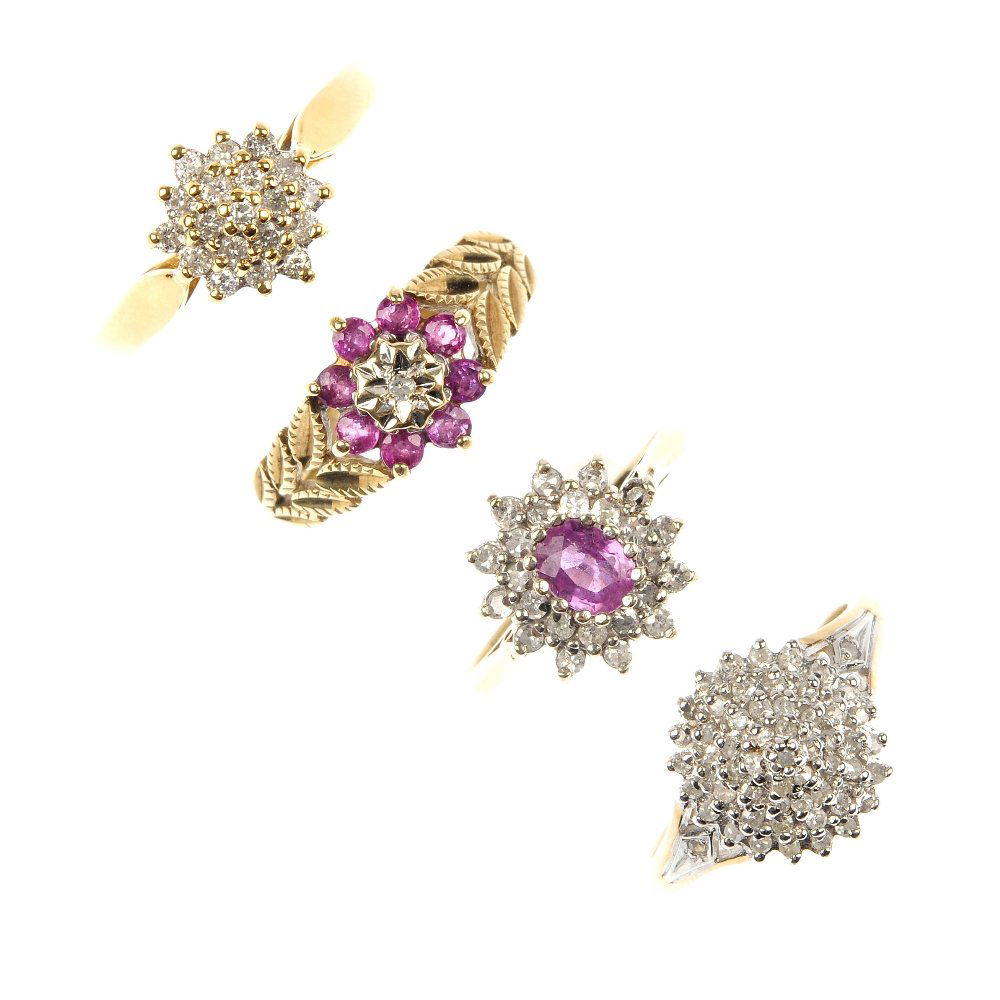 A selection of five gem-set cluster rings.