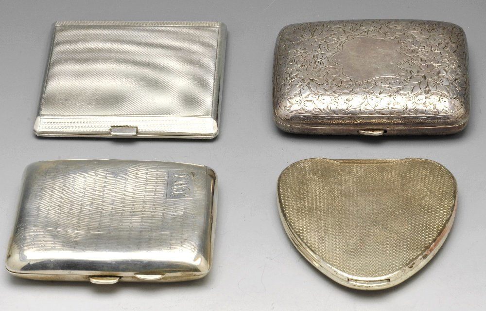 A selection of silver cigarette cases & compact.