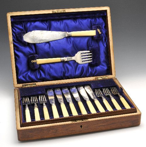 A CASED SET OF CHINESE SILVER BLADED MOTHER OF PEARL WAIKEE CUTLERY. Each fork 360 grams overall, knHannam's Auctioneers Ltd4.3(415)£56 days Left