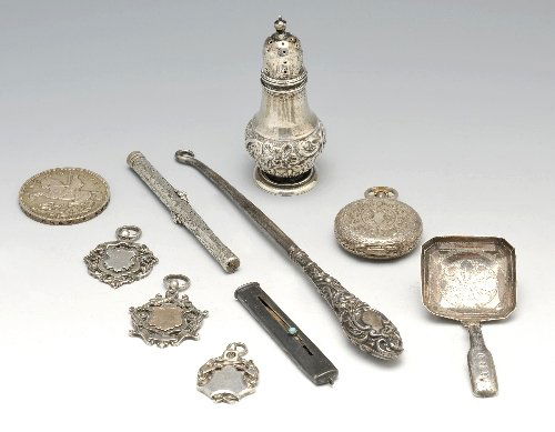 Lot Of Six Mixed Sterling Silver Flatware ItemsFeb 28, 2026Lot of silver cutlery113 Lots Away9PC LOT OF STERLING SILVER, 22 T.O.W.Mar 07, 2026Lot of sterling silver dresser accessories, including various covered glass jars and scent bottles.Mar 01, 2026Lot of silver utensils. To include: continental lion handle spoon, shaped bowl serving spoon,Mar 01, 2026Lot of sterling silver accessories and tableware. To include: Chinese wise man figural shakers, O.Mar 01, 2026Large lot of sterling silver and silver handled utensils. To include: Durgin serving fork and spoonMar 01, 2026GROUP LOT OF SILVER ITEMSFeb 25, 2026Vintage/Antique Sterling & 800 Silver Assortment7 days LeftMIXED LOT OF SILVER SPOONS AND OTHER PIECESMar 06, 2026MIXED SILVER LOT STERLING 900 AND SPANISH SILVER 8356 days LeftMIXED LOT OF SILVER, WHITE METAL AND OTHER ITEMSMar 06, 2026Silverplate Flatware, Tableware and AccessoriesFeb 26, 2026ASSORTED ESTATE SILVER PLATED UTENSILS & TABLEWAREMar 07, 2026Assortment of silver serving pieces and utensils. To include: German repousse spoon, floral knifeMar 01, 2026(11pc) GROUP OF MISC. SILVER HOLLOWARE7 days Left