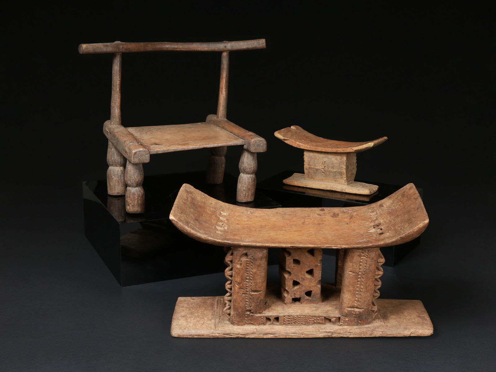 A Senufo and two Asante Seats