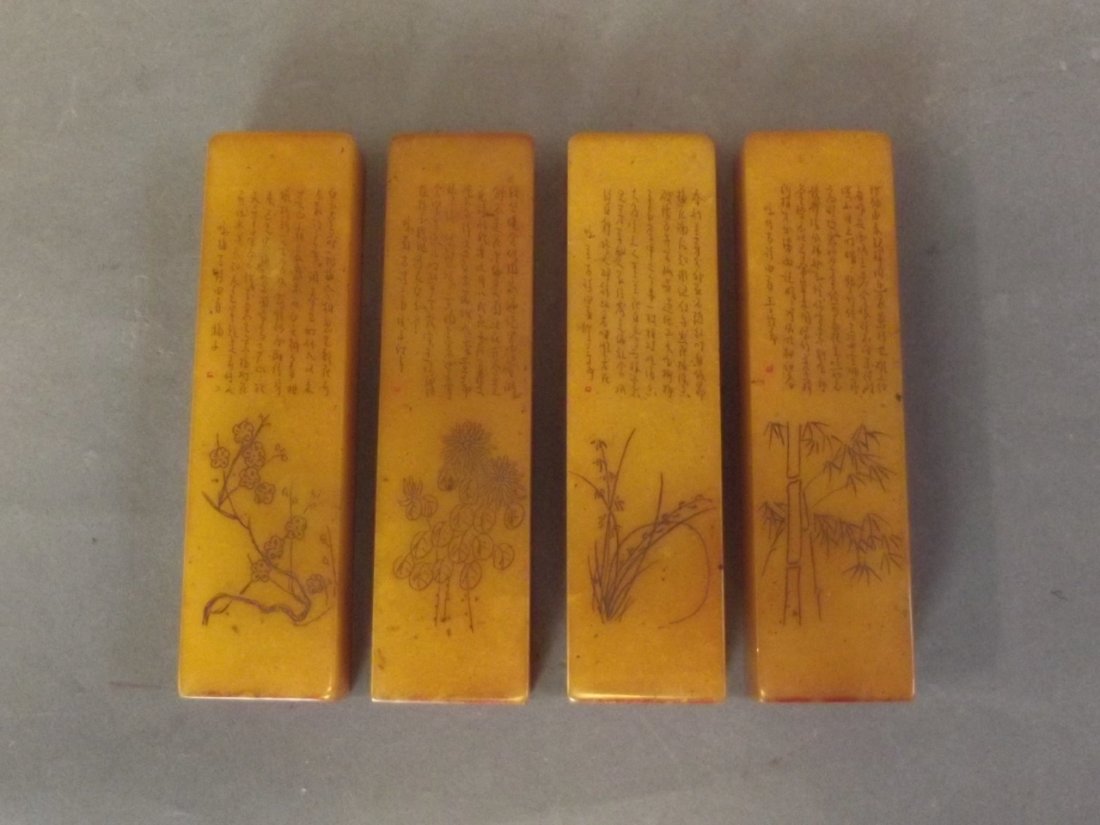 A set of four Chinese rectangular soapstone seals with