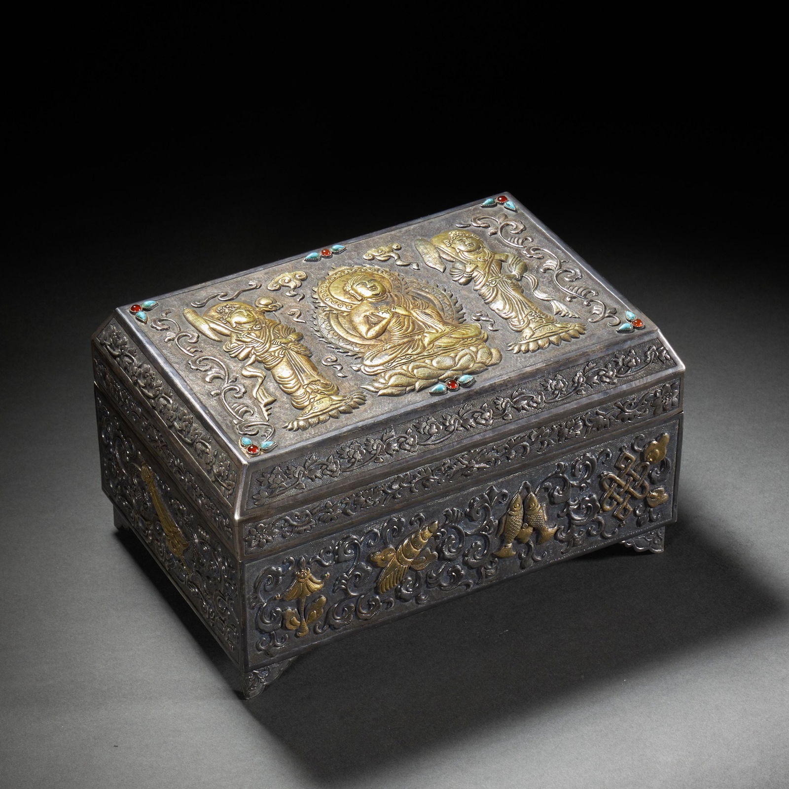 Old Tibetan Gilt Gold Copper Buddha StatueA Gorgeous Gilt-Silver 'Buddha Shakyamuni' Box With A Scroll Of Buddhist SutrasMar 06, 2026A Tang Dynasty silver-gilt inlaid treasure scripture boxFeb 28, 2026A Magnificent Gilt-Bronze Silver 'Buddha Shakyamuni' Buddhist Sutra Box With A Scroll Of SutraMar 06, 2026A SILVER SCRIPTURE WITH GOLD INLAYFeb 21, 2026A Gorgeous Gilt-Silver Gem-Inlaid 'Buddha Shakyamuni' Box With Six Scrolls Of Buddhist SutrasMar 06, 2026A GILT BRONZE BUDDHIST SHRINE (WITH SCRIPTURE)Feb 21, 2026A HARDSTONES INLAID BRONZE-GILT SUTRA BOX WITH COVERMar 01, 2026An Exquisite with poem InkstoneMar 04, 2026A sterling silver Buddhist scripture with a boxFeb 28, 2026A Qing Dynasty Tibetan Buddhist silver-inlaid horn Gabala offeringMar 07, 2026A bronze gilt Buddha niche in the Qing Dynasty (religious utensils for worshiping Buddha statues)Feb 28, 2026A Gorgeous Gilt-Bronze Gem-Inlaid 'Scrolling Lotus& Weapons Of The Eight Immortals' BoxMar 06, 2026A GILDED BRONZE SUTRA CHESTFeb 21, 2026A Rare Gilt Silver Dragon Pattern Cover Box,Inlaid GemsFeb 28, 2026An Exquisite Silver Inlaid Gems Lion Pattern BoxFeb 24, 2026