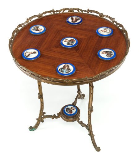 An Antique Regency Style Drum Table5 days LeftAn Exceptional Ormolu & Porcelain mounted table by Maison Millet6 days LeftLOUIS XVI STYLE ORMOLU-MOUNTED & POLYCHROME INLAID SALON TABLE15 hrs LeftLouis XV Style Kingwood Marquetry Bouillotte TableMar 05, 2026Spiro Parquetry Inlaid Center Table Model 8101-35 Mixed Wood 41" x 41" x 30"7 days LeftRococo Style Portoro Marble Top Walnut TableApr 14, 2026Émile Gallé (1846–1904) French Art Nouveau 2 Tier Shield Form Side TableMar 07, 2026Louis XV Style Marble Top Inlaid Walnut Table en ChiffonierMar 12, 2026Chinoiserie Yellow Painted Occasional TableMar 19, 2026Louis XV Style Kingwood and Marble Oval Low TableMar 19, 2026Louis XV Style Kingwood Marble Bouillotte TableMar 19, 2026Louis XVI Style Mahogany Gueridon Table with Marquetry and Bronze MountsMar 02, 2026ANTIQUE FRENCH GUERIDON TABLE WITH A MARBLE TOPMar 07, 2026Louis XV Style Gilt Bronze Mounted Mahogany Small Vitrine TableMar 12, 2026George III Mahogany Tilt-Top Tea Table6 days LeftMaitland Smith Chinoiserie Round Drum Table with Brass Gallery5 days Left