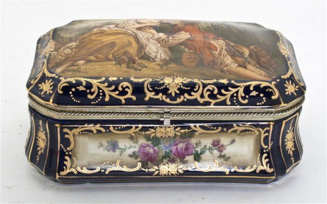 A Sevres Style Porcelain Table Casket, Width 10 3/