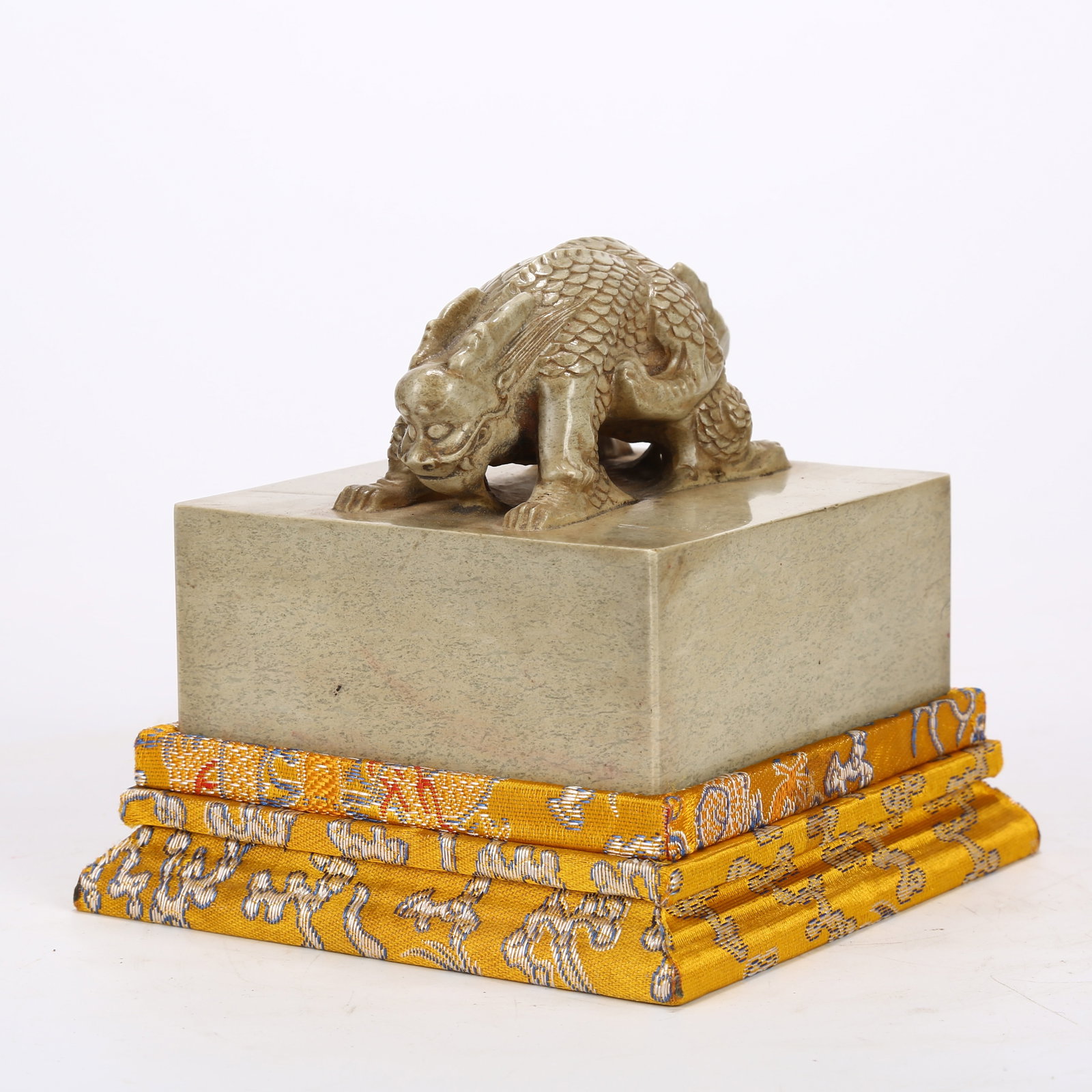 A SHOUSHAN STONE INTERLOCKING DRAGON KNOB SEAL