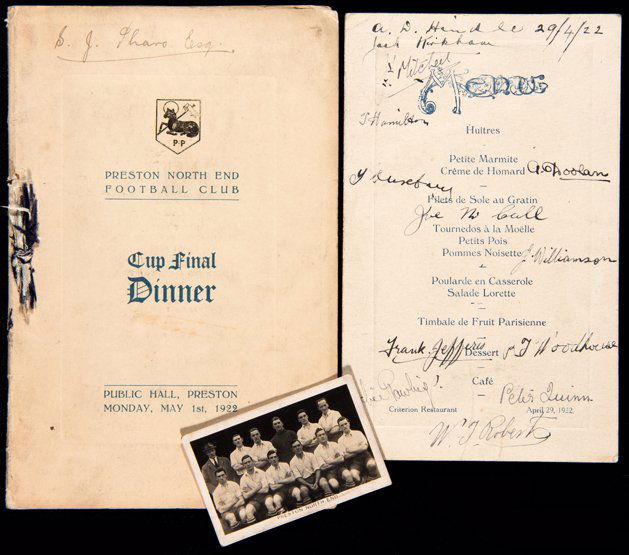 A signed Preston North End 1922 F.A. Cup Final Dinner