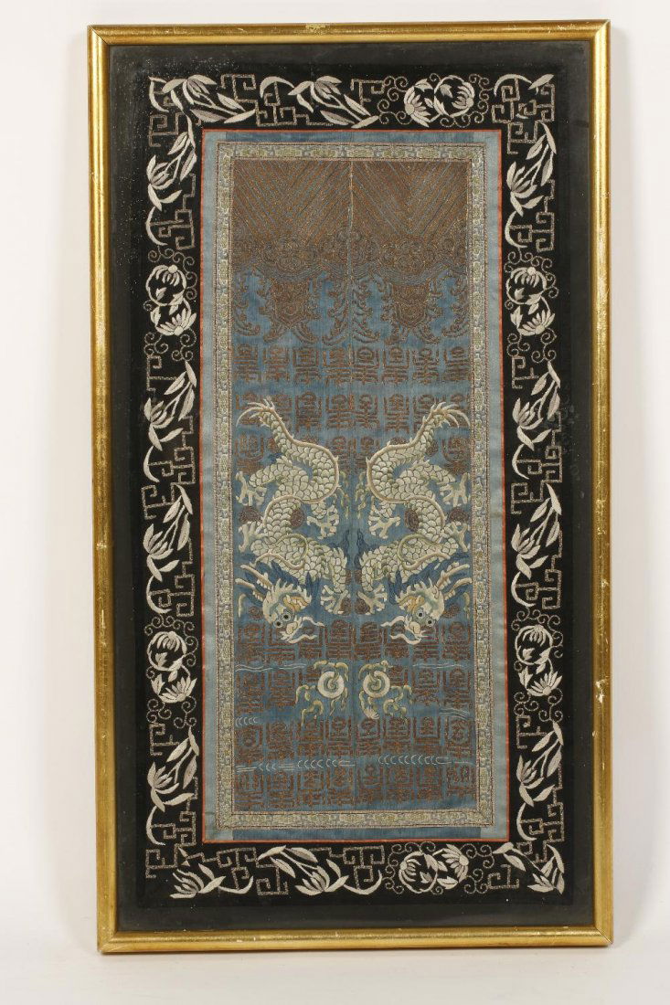 AN IMPERIAL 'TWO DRAGONS' SILK BROCADE FRAGMENT, MING DYNASTYMar 12, 2026Vintage Asian Embroidery on Silk(prob) PanelMar 02, 2026Chinese Embroidered Rank BadgeMar 07, 2026Framed Japanese Kesi Dragon Panel/Textile.Mar 08, 2026Qing Dynasty Dragon Robe Fabric with Gold Thread Embroidery5 days LeftA Chinese Silk Embroidery Panel with Peony and Crashing Waves4 days LeftPanjin embroidery (gold thread embroidery) of Two Dragons Holding the Longevity Character , Qing1 day LeftGold Thread Embroidered Robe Fabric with Dragon Pattern, Mid-Qing DynastyMar 04, 2026Chinese Silk Embroidered Kessi PanelMar 17, 2026Chinese Velvet and Gold Thread Meditation Hanging.Mar 08, 2026Pair of Qing Dynasty Suzhou Embroidery "Dragon and Phoenix Present Auspiciousness"5 days LeftGold Thread Embroidered Robe Fabric with Dragon Pattern, Qing DynastyMar 04, 2026Two Chinese Embroidered Silk 'Dragon' Hanging PaMar 12, 2026Fine Antique Chinese Square Blue & Gold Silk Embroidered Textile Panel7 days LeftA Chinese Imperial-Style Silk Dragon Panel, Five-Clawed Dragon Amid Clouds4 days LeftA Chinese Embroidered Silk Panel with Floral and Geometric Motifs4 days Left