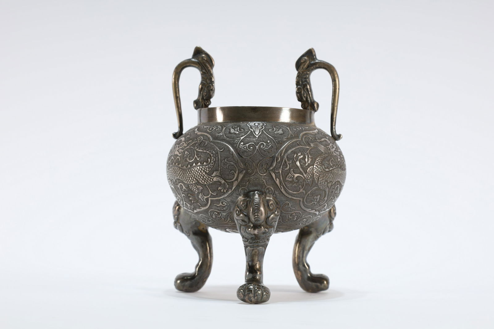 A Silver ‘Dragon’ Double-Ear Tripod Censor