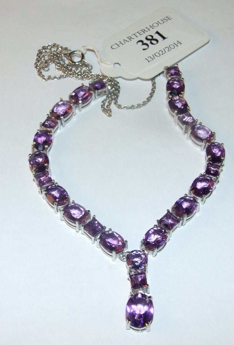 A silver and amethyst necklace
