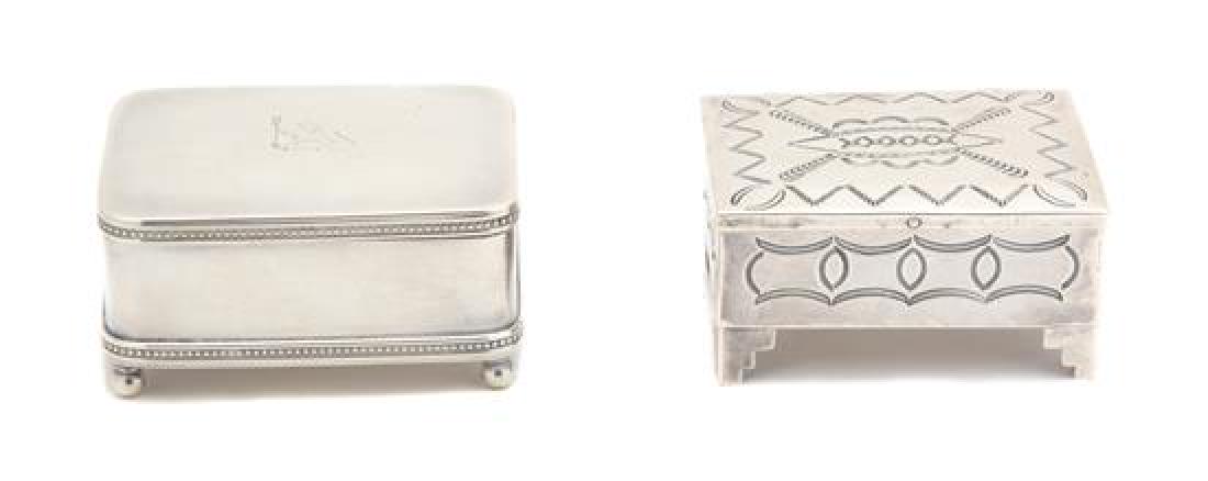 Lot of Silver Items.Mar 10, 2026Vintage Silver Plate Jewelry BoxMar 10, 2026Sterling Silver Hinged Box with Wood Liner (2"h x 5 1/2"w x 3 5/8"d, has some dents) AND SterlingMar 10, 2026Two English Silver Cigarette Boxes, LondonMar 13, 2026A PAIR OF GEORGE III SILVER SHAPED OVAL TEA CADDIES, AARON LESTOURGEON, LONDON 17813 days LeftSilverplated Dresser Box4 days Left(2) ENGRAVED TOBACCO / SNUFF BOXESMar 15, 2026A PAIR OF SILVER GILT FILIGREE CASKETS, PROBABLY GOA, 18TH / 19TH CENTURYMar 19, 20265 Miniature Silver BoxesMar 14, 2026Two Silver, Enamel & Hand-Painted Pill Boxes with CatsMar 14, 2026George III Sterling Silver Tea Caddy and Teapot StandMar 16, 2026A silver cigarette box,Set of 8 silver boxes. Various designs and alloys.2 hrs LeftAntique Continental Silver Cherub & Insect .863 Fine Silver Trinket Box8 hrs LeftSilver Plate Lidded Boxes Plateau Tray and Brass Stamp Box (5)Mar 28, 2026Antique Silver Snuff CaseMar 17, 2026