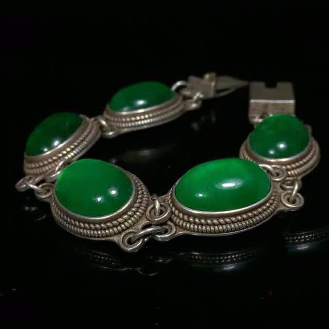 A SILVER BRACELET INLAID WITH JADE