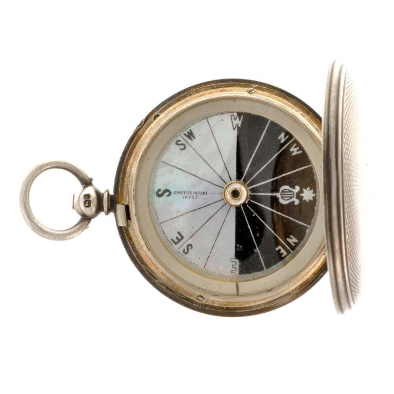 A silver cased full hunter compass.