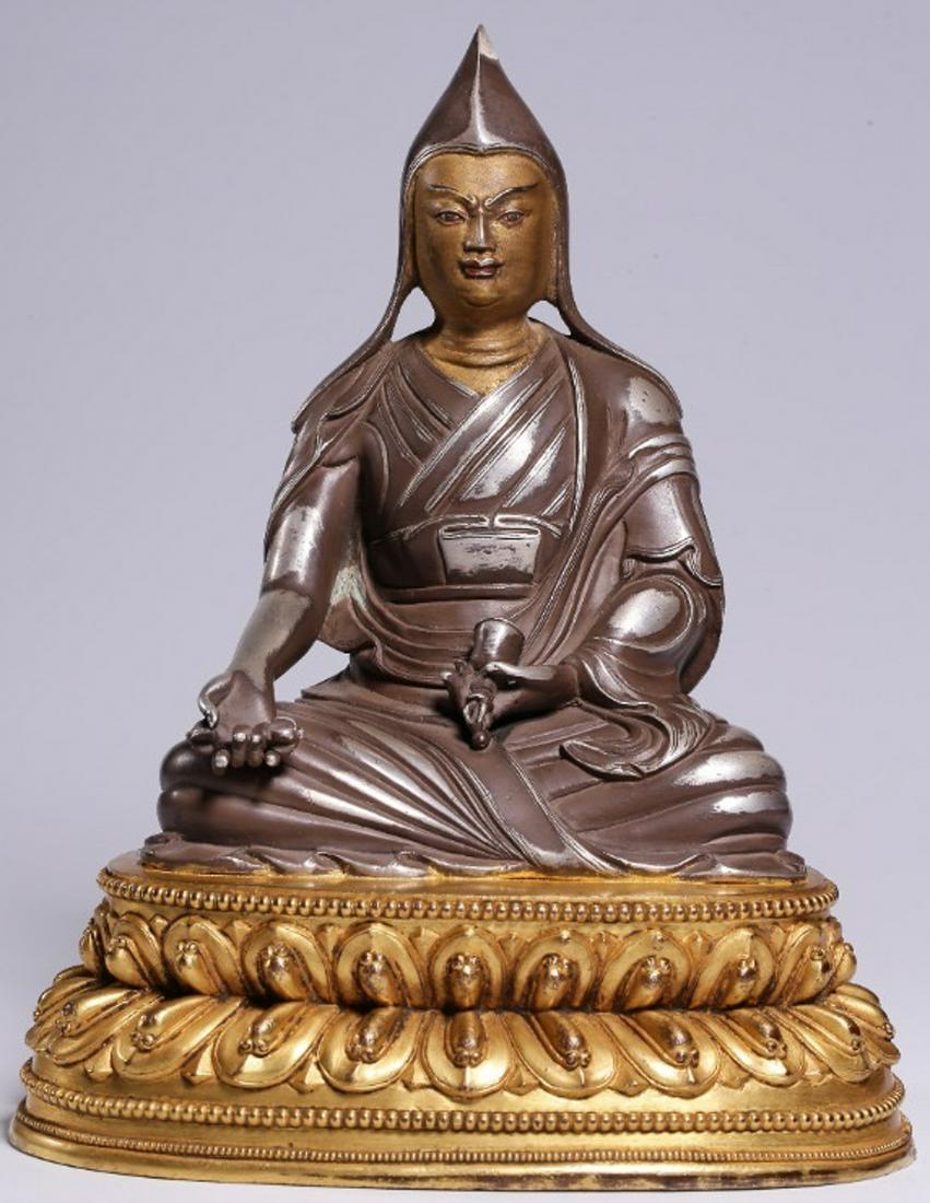 A SILVER CAST ATISA BUDDHA STATUE