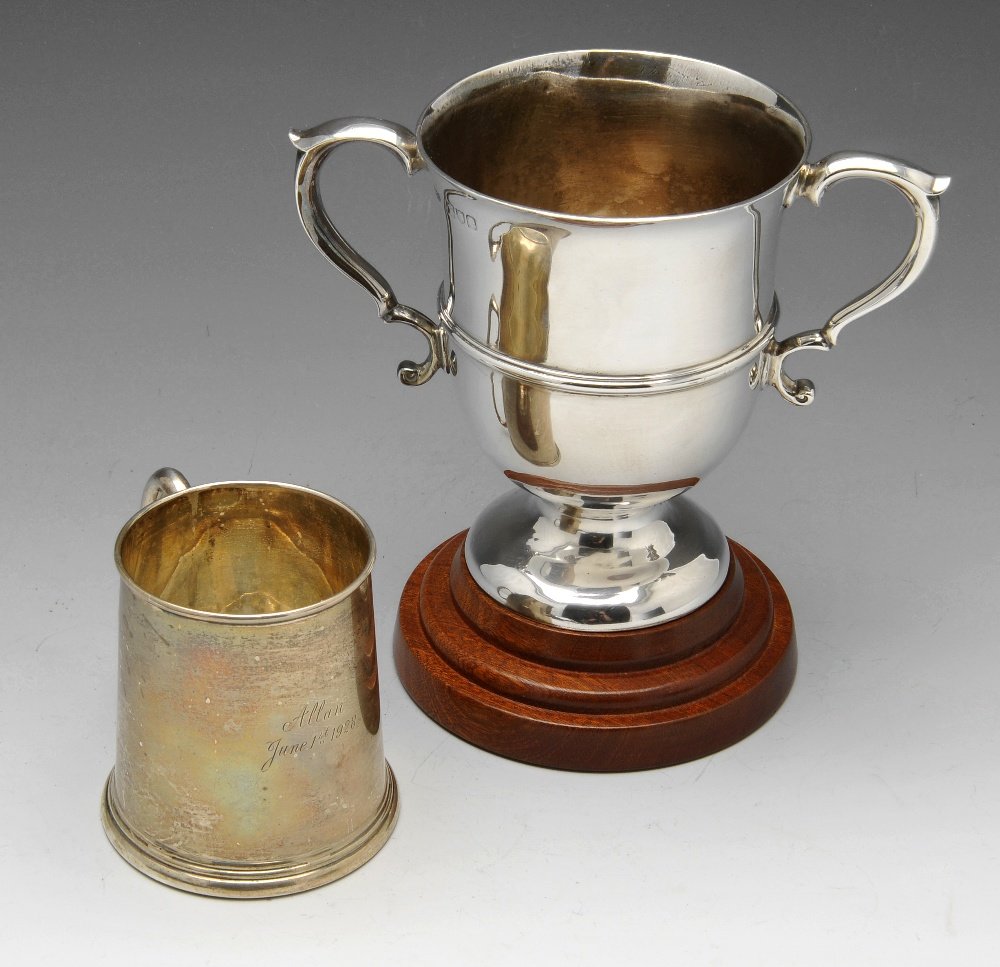 A silver christening mug, trophy cup, etc.