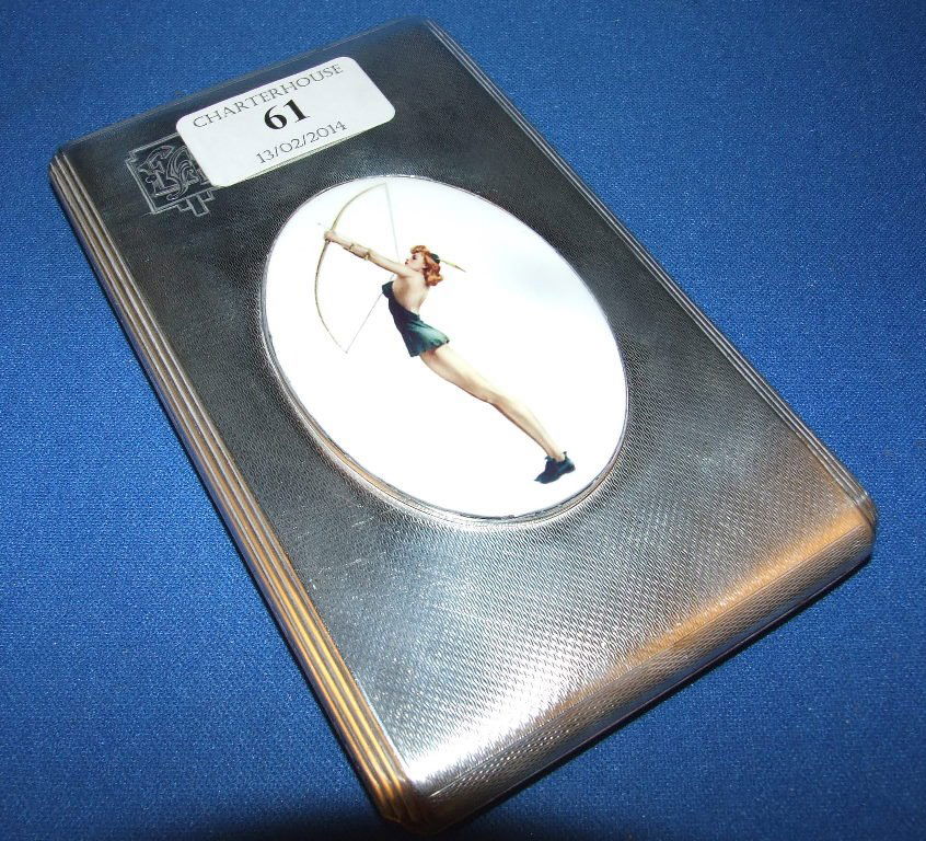 A silver cigarette case, initialled, later applied a