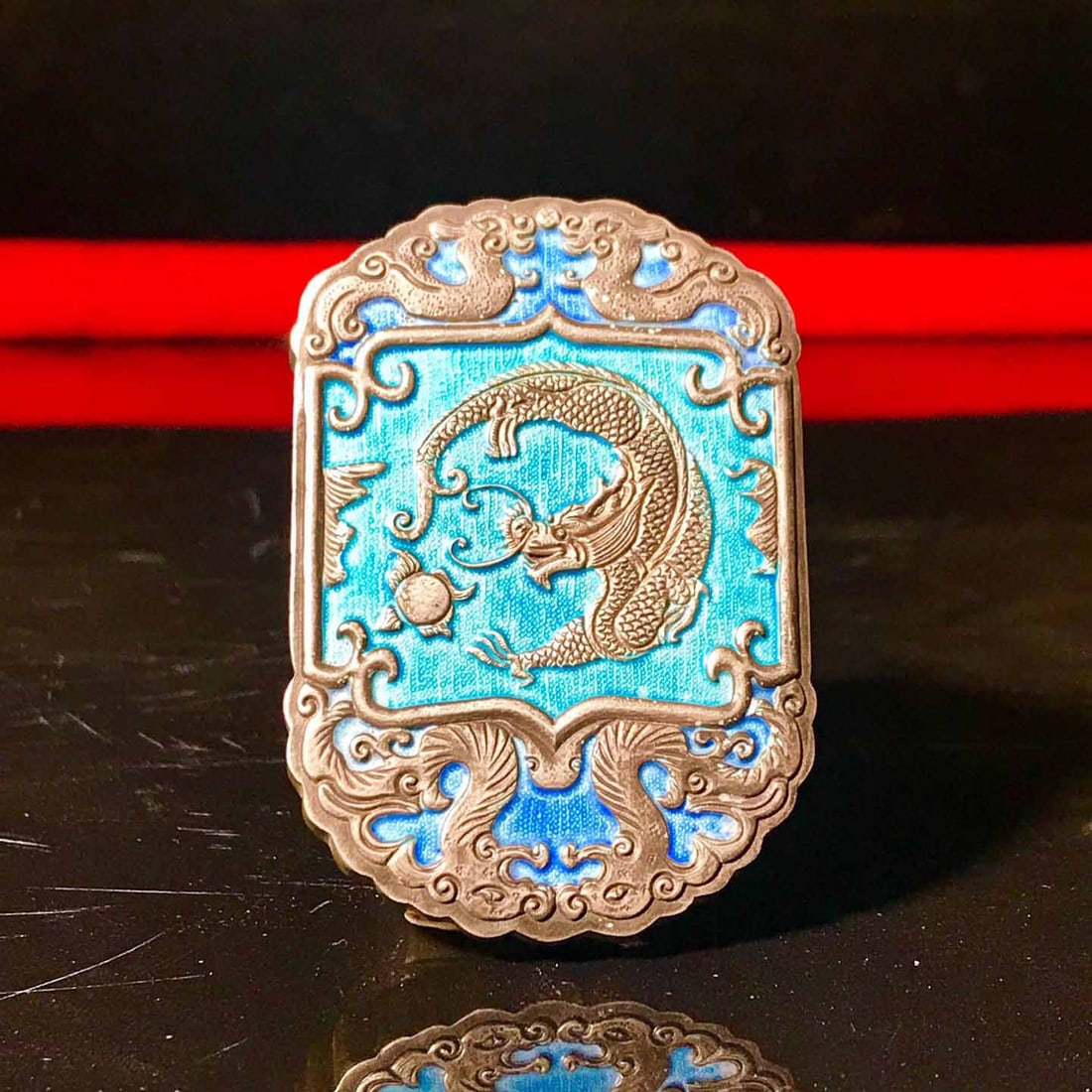 A silver dragon fish pendant