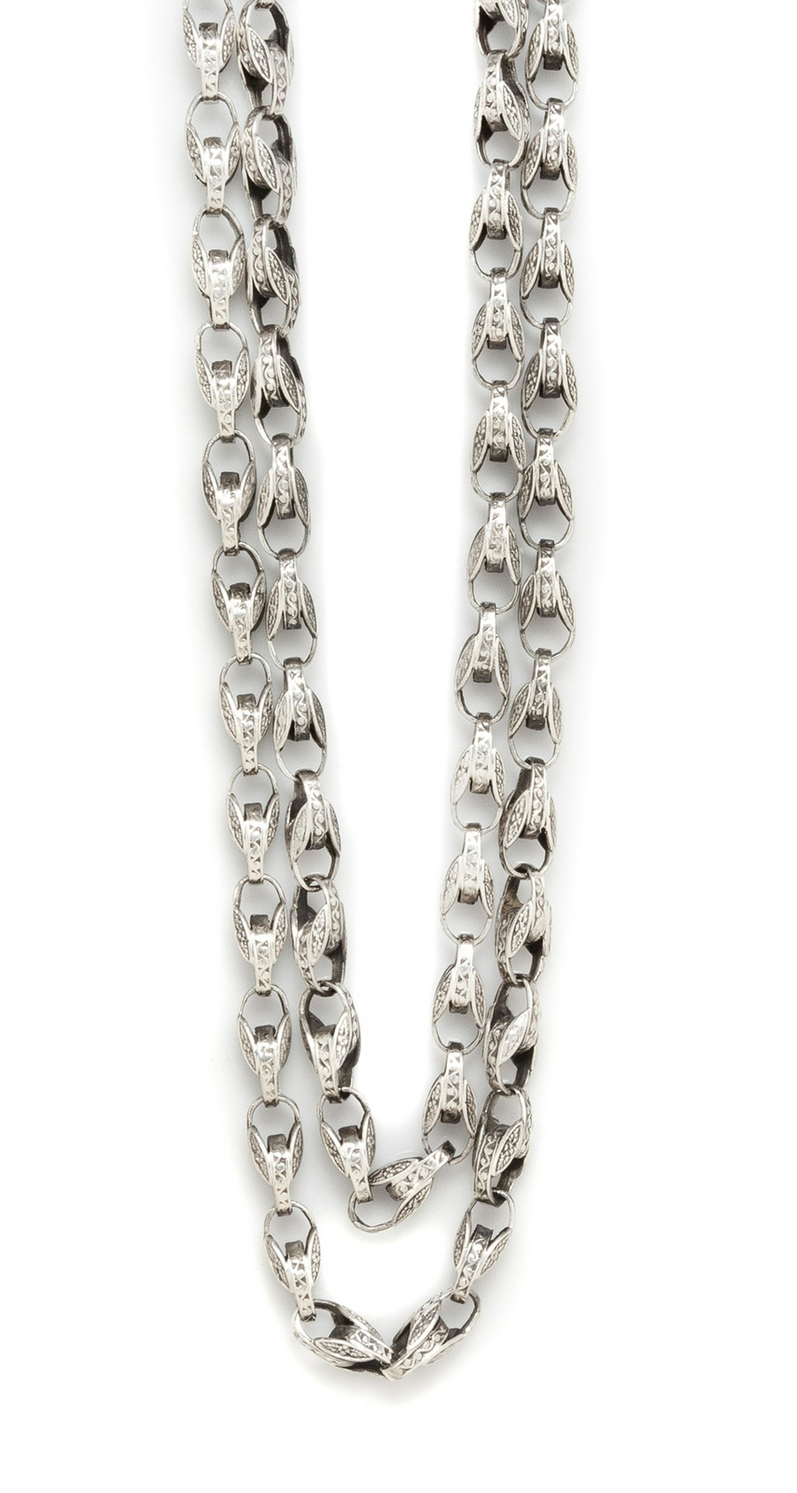 A Silver Fancy Link Longchain Necklace,