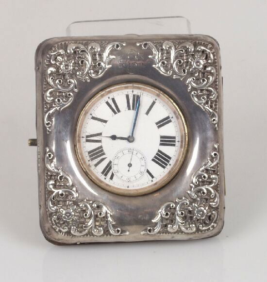 A silver framed travelling watch case w