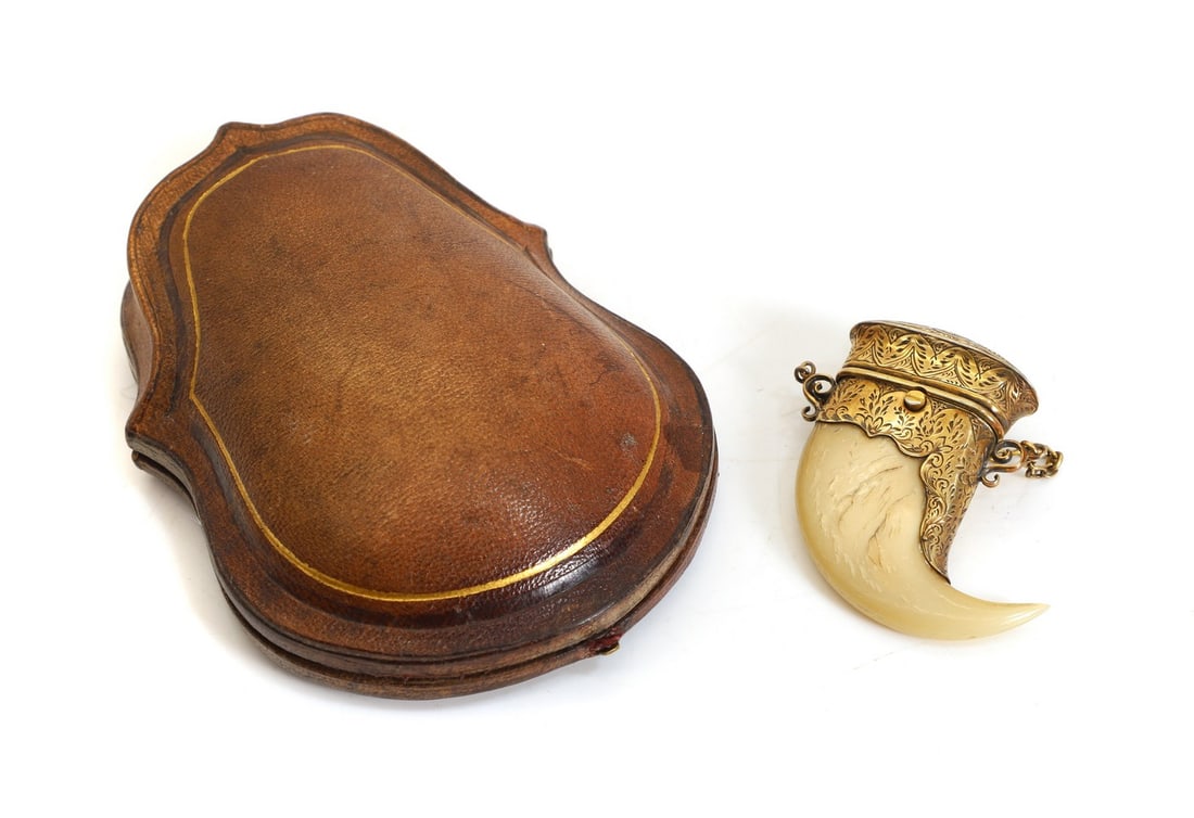 A silver gilt tiger claw scent bottle,