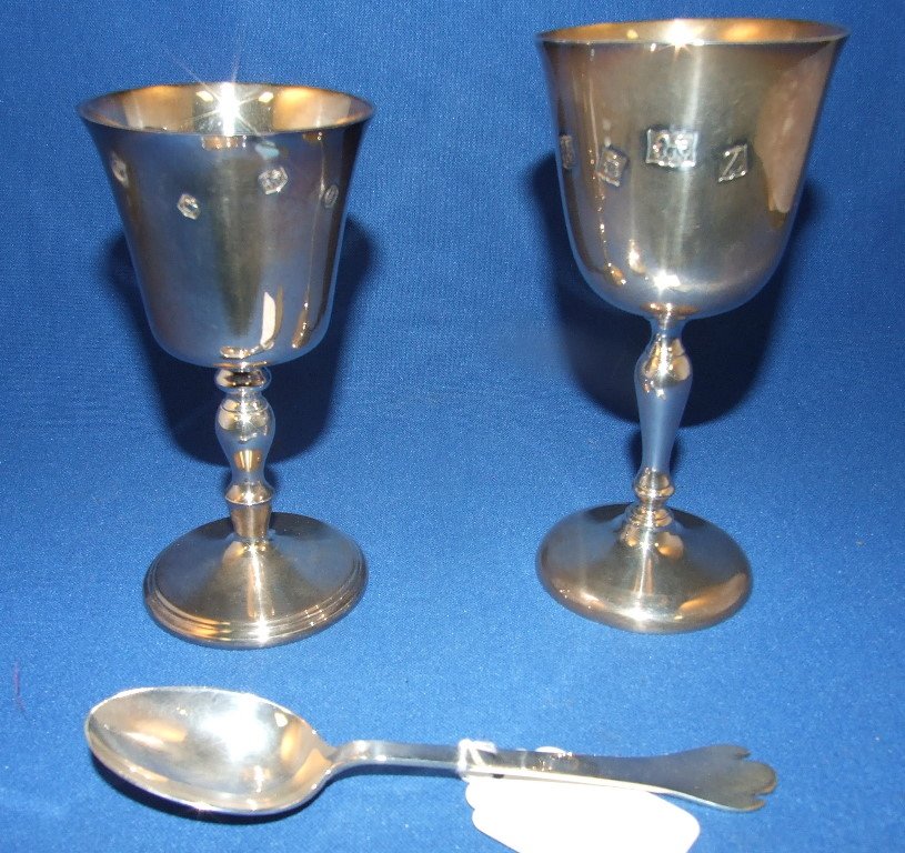 A silver goblet, Sheffield 1973, 12 cm high, another,