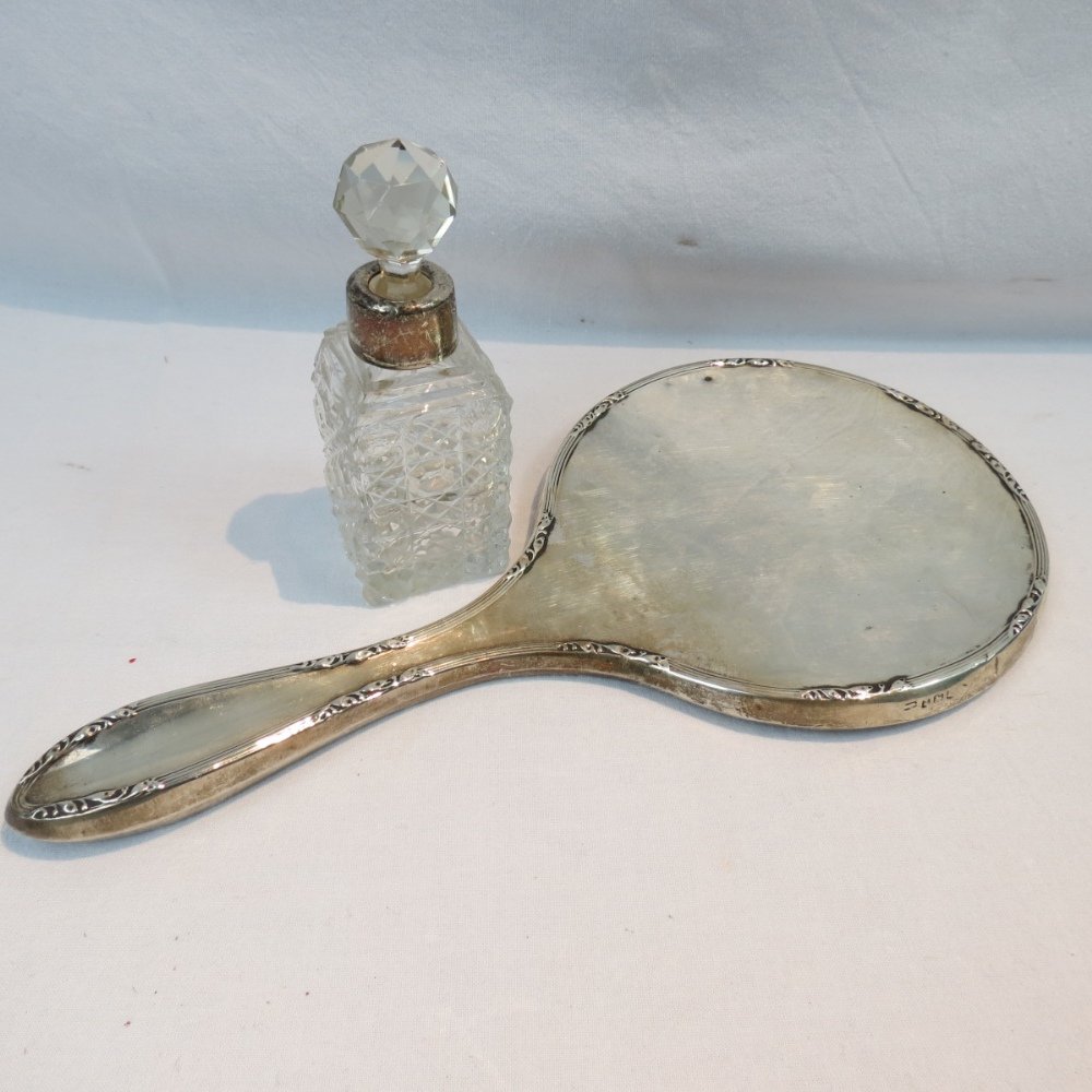 Sold1918 Silver Backed Hand MirrorSilver Backed Hand Mirror, Fully Hallmarked (Rubbed) Birmingham 1918, Initialled D.M.B, Length 10.75"See Sold Price