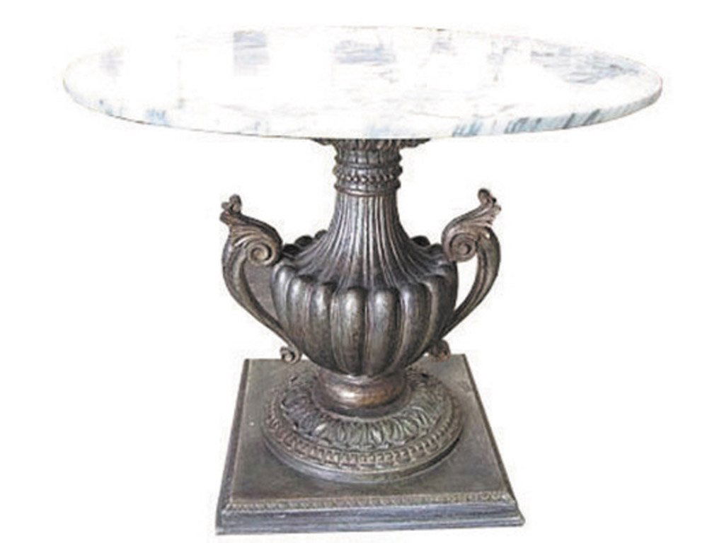 A silver-leafed urn table with white marble top, circa