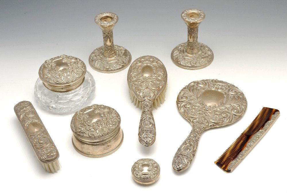 Lot of silver cutlery113 Lots AwayGroup of Vintage Sterling Dresser Items2 days LeftGROUP OF SILVER AND CUT GLASS DESK ITEMS11 hrs LeftGroup of Silver Dressing Table Items, Variously Engraved with Whitney MonogramsFeb 11, 2026Group of Mappin and Webb Sterling Silver Vanity Set2 days LeftGroup of Assorted Silverplated Table and Dresser Articles2 days LeftSterling Silver & Guilloche Enamel Dresser Set, (12) Piece Set, Silver Marked Sterling4 days LeftCollection of Sterling and Coin Silver FlatwareFeb 12, 2026Towle Old Mirror Sterling Silver Flatware Set 30 Pieces with Storage ChestFeb 11, 2026Tiffany Et A. Group of Silver Vanity Items, 234 days LeftLARGE GROUP SILVER HOLLOWARE & SERVING ITEMSFeb 22, 2026Silver Plated Hostess Wares2 days LeftAN AMERICAN GOLD TRAVELLING DRESSING TABLE SERVICE MARK OF TIFFANY & CO., NEW YORK, SECOND QUARTERFeb 13, 2026Whiting Dresden Sterling Silver 8pc Vanity Dresser Set Monogrammed2 days LeftAN ANTIQUE SILVER DRESSING TABLE SET. 665 grams overall. (5)Feb 10, 2026(11pc) GROUP OF MISC. SILVER HOLLOWAREFeb 22, 2026